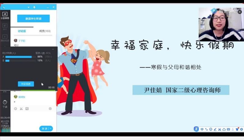 2月8日下午,由校党委学生工作部主办,太阳成集团tyc151cc、机械工程学院及莳心工作室承办的 “寒假与父母和谐相处”专题心理讲座在腾讯课堂举办,旨在引导广大学生在寒假能更好地与父母和谐相处,感受家庭的温暖与幸...