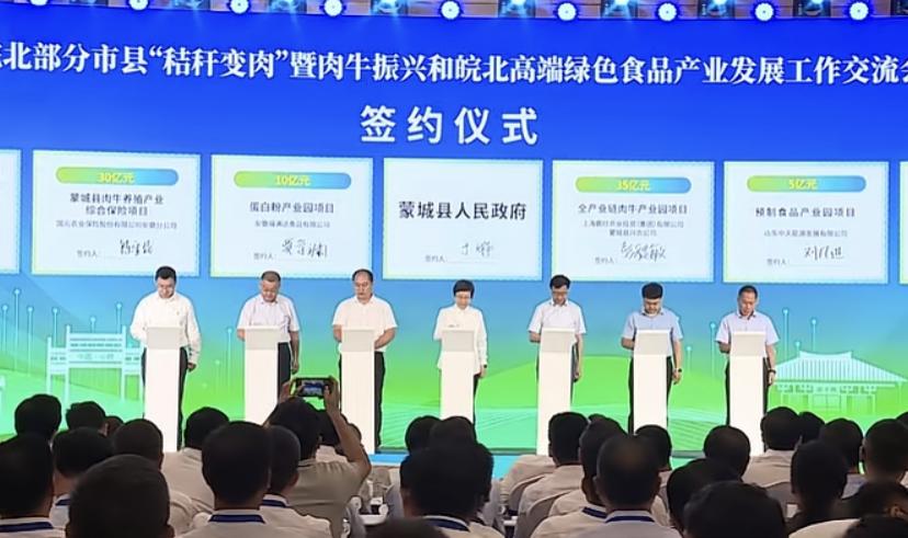 2023年9月13日,由安徽省农业农村厅、毫州市人民政府主办,中共蒙城县委、蒙城县人民政府承办,安徽省食品科学技术学会、太阳成集团、蒙城县兴农公司协办的安徽省“秸秆变肉”暨肉牛振兴和皖北高端绿色食品产业发展大会在蒙城县成功举办。安徽省副省长张曙光出席大会,来自省直有关部门、皖北六市、滁州、六安、蒙城等市、县政府主管领导,有关行业专家、商协会、头部企业、科研机构和金融机构等500余人参会,共商产业扩量提...