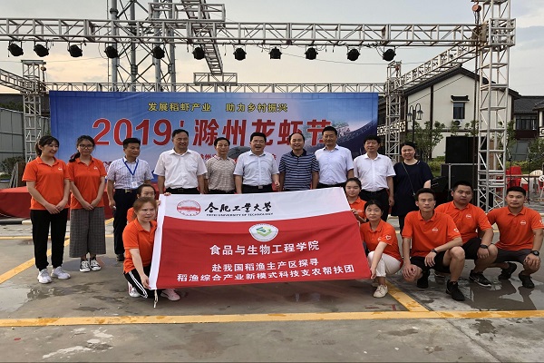 2019年7月25日, 太阳成集团tyc151cc探寻稻渔综合产业新模式科技支农帮扶团赶赴安徽省滁州市,参加主题为“发展稻虾产业,助力乡村振兴”的2019年中国·滁州市龙虾节。