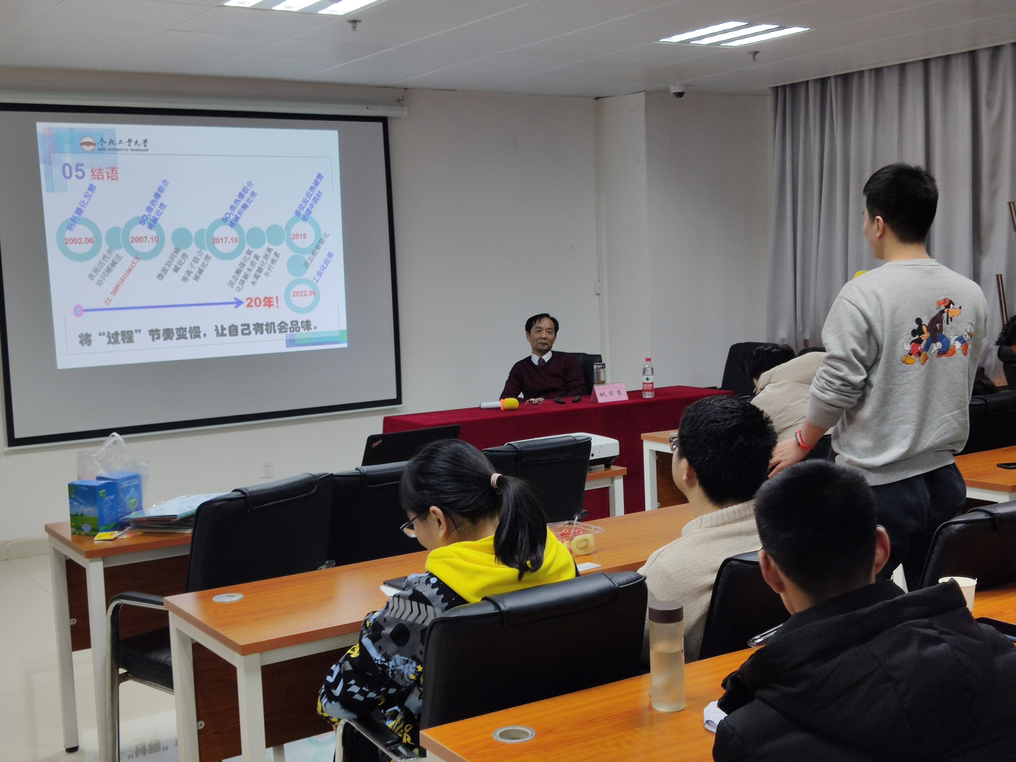 最后是提问环节,同学们陆续提出科研中遇到的难题,姚老师一一耐心解答并勉励在场的各位研究生,要静下心来做自己的事情,克服浮躁的诱惑,抛弃急于求成的幻想,脚踏实地钻研自己所学的专业,多发文章,发好文章,只有把自己所学的东西做大做强,让自己在所学领域到达了一定的高度,才能去做自己想做的事情,才有权利去选择自己想做的事情。