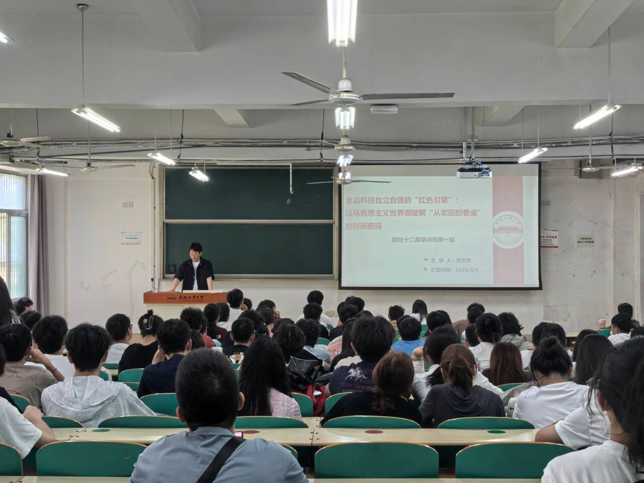 此次比赛围绕“我眼中的马克思主义‘潮’在哪?”的话题,分十个小组进行评比,全员参与课程评比打分,分别从理论深度、内容创新、现场表现和团队合作四个方面进行评分。微团课评比过程中,各组通过PPT进行授课,同学们拟定了如“食品科技自立自强的‘红色引擎’:以马克思主义世界观破解‘从农田到餐桌’的创新密码”“我眼中马克思主义的时代脉动”和“马克思主义的‘潮’流——探寻马克思主义的独特魅力与时代价值”等标题,分别从马克思主义理论‘潮’、思想‘潮’和创新‘潮’等方面展开讨论,回答了青年学生心目中马克思主义‘潮’在哪的问题,展现了马克思主义在新时代的蓬勃生命力。经过评比,共评出一等奖2个、二等奖3个、三等奖5个。