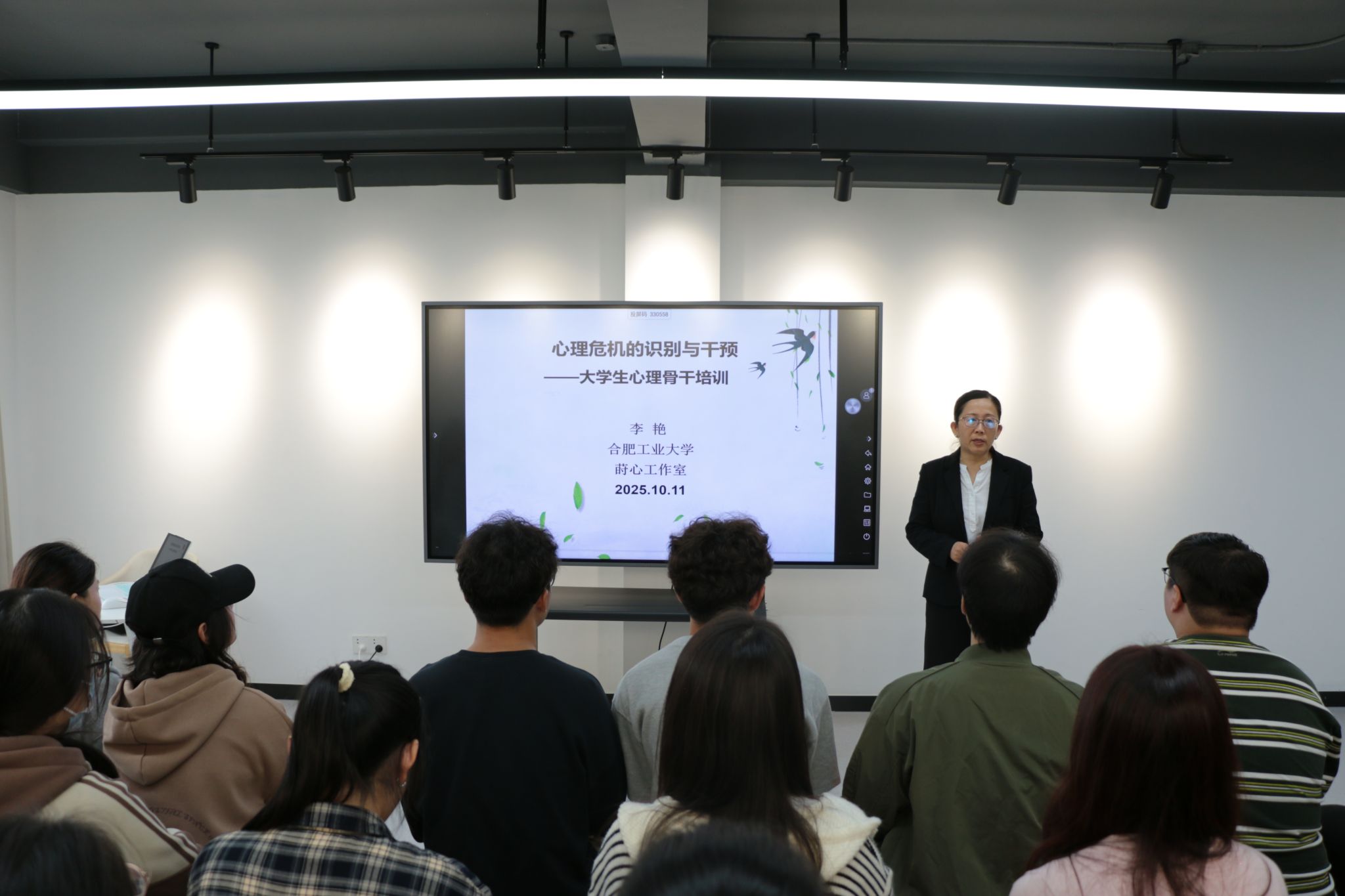 10 月 11 日下午,一场聚焦“实战能力提升”的朋辈心理骨干培训在翡翠湖校区四号宿舍楼学生社区沙龙空间举行。活动特别邀请国家二级心理咨询师、中国心理学会注册心理师李艳主讲,围绕“大学生常见心理问题识别与危机预防”主题,她为学院朋辈心理骨干带来一场专业、实用的“充电课”。