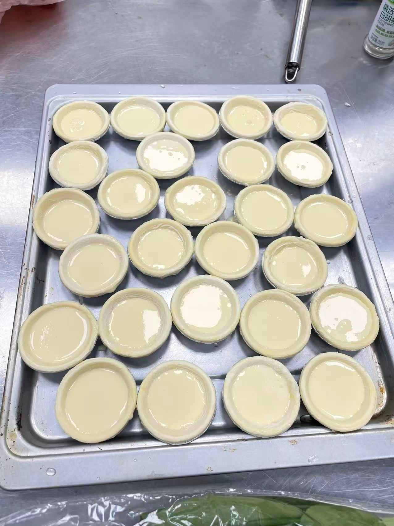 在甜品烘焙区,同学们细致地将蛋液注入蛋挞皮,送入烤箱。随着烤箱温度的升高,蛋挞逐渐变得金黄酥脆,蛋液凝固成滑嫩的蛋挞芯,浓郁的奶香在空气中弥漫。看着自己亲手制作的蛋挞从生胚到成品的蜕变,同学们满是成就感。