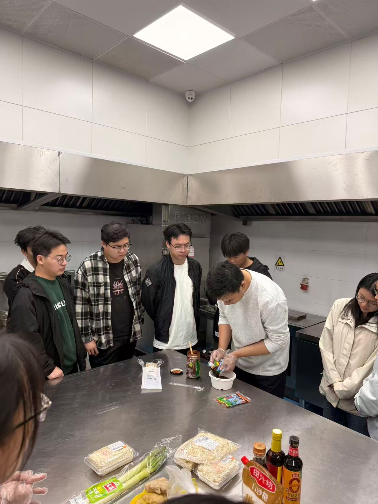 活动前期,活动负责人精心规划流程,准备了丰富的食材与器具。从制作炸酱的配料:肉末、青菜、葱姜酱料等;到烘焙蛋挞的蛋挞皮、蛋液原料,再到各类调味品、一次性餐具等,一应俱全的物资为活动的顺利开展奠定了坚实基础。