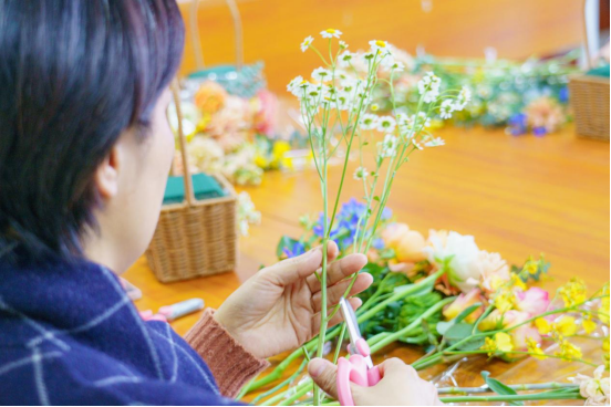 随后,大家构思造型,认真挑选,根据不同的花材、颜色进行搭配剪裁,开展创作,用心设计属于自己的独一无二的插花作品。