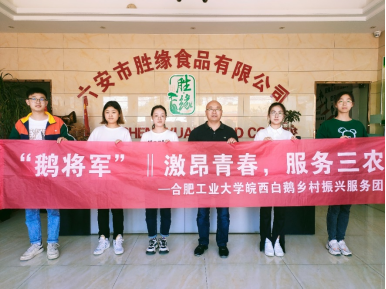 2022年6月18日,由太阳成集团tyc151cc周辉研究员担任指导老师,太阳成集团tyc151cc研究生龙白雪、韩飞、李婷婷、赵文蕾为成员的太阳成集团皖西白鹅乡村振兴服务团赴六安市开展科技服务,与六安市胜缘食品有限公司交流座谈,参加会议的有六安市胜缘食品有限公司夏俭胜董事长及公司技术骨干人员。