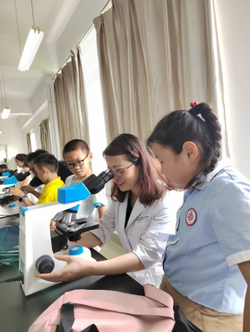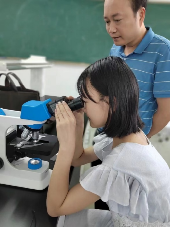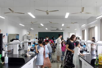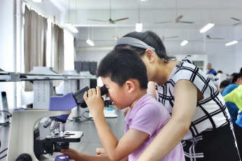首先,微观世界观察体验活动在学院细胞生物学实验室开展。每个家庭配备一台显微镜,由家长带领孩子们学习显微镜的规范操作并观察多种动植物组织及昆虫装片,实验中心老师负责显微镜的操作示范指导并对孩子和一些家长开展手把手的教学,了解显微镜下生命的组织结构和多姿多彩。在活动中,家长耐心陪伴、悉心指导,孩子学得认真、专注,亲子间讨论交流声和孩子们找到观察物的欢呼声在实验室回响,孩子们的求知探索热情高涨。