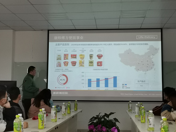 12月1日下午,学院师生前往康师傅控股的合肥顶津食品有限公司。公司负责人为同学们简要介绍了康师傅公司的业务,并为回答问题的同学送上了印有工大校训的小礼品。此外,在该公司工作的优秀校友带领同学们参观了饮料的生产线,对饮料生产过程做了详细的介绍。他同时结合自身经历,激励同学们明确方向,努力学习。
