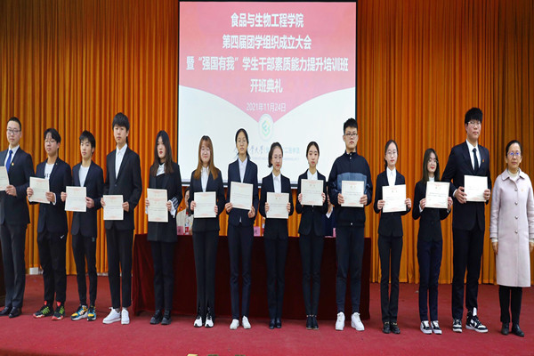 11月24日下午,太阳成集团tyc151cc在翡翠湖校区综合楼301报告厅隆重举办第第四届团学组织成立大会暨“强国有我”学生骨干素质能力提升培训班开班典礼。学院党委副书记李艳、团委书记万代林、学生会秘书长葛永莉和全体团学组织学生干部120余人参加。