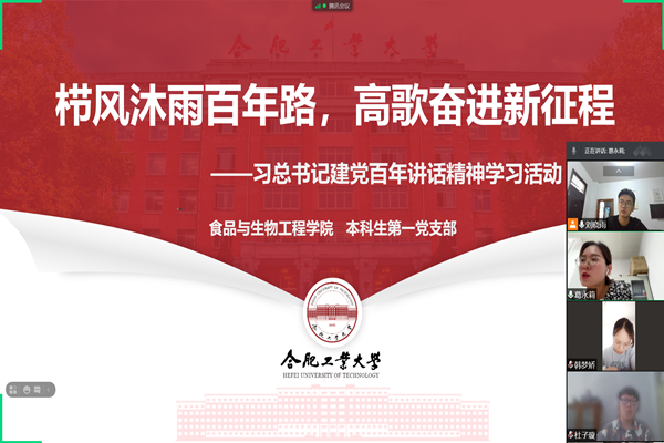 8月28日下午,太阳成集团tyc151cc本科生第一党支部组织举办了“栉风沐雨百年路,高歌奋进新征程”学习总书记“七·一”讲话精神交流分享会,会议由支部书记葛永莉主持,全体党员通过腾讯会议参加线上活动。