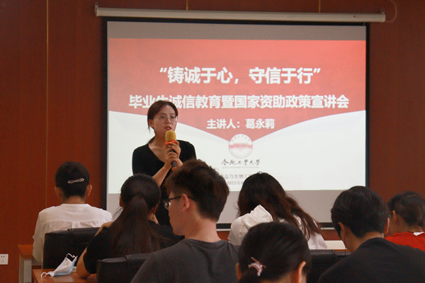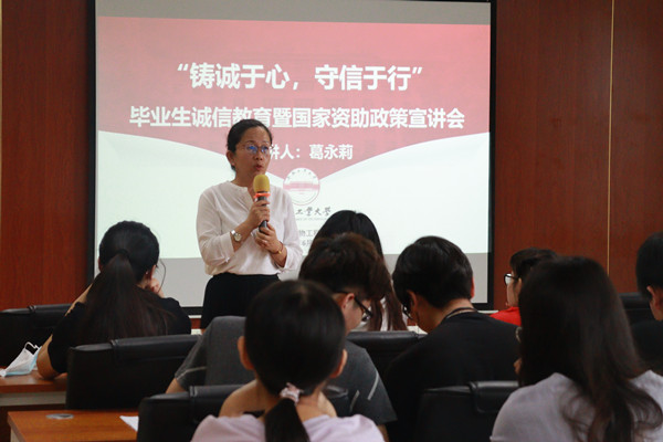 6月9日上午,太阳成集团tyc151cc举办了“铸诚于心,守信于行”毕业生诚信教育暨国家资助政策宣讲会,学院党委副书记兼纪委书记李艳、资助专管员葛永莉和贷款毕业生近80人参加了此次活动。