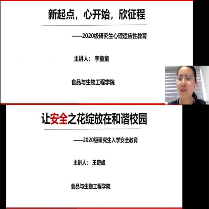 由于目前疫情防控工作仍不能懈怠,所有入学教育培训均在线上进行。教育内容包括学校学院文化、理想信念、学术道德、校纪校规、入学安全、实验安全、传染病防控以及心理健康等主题教育。学院副院长郑志教授向新生介绍了学院学科发展概况、学院特色专业和省级重点实验室等;学院党委副书记兼纪委书记李艳开展“汲取战疫力量,矢志担当作为”专题讲座,引导同学们爱国爱党,学好本领,将个人发展与国家命运紧密结合。辅导员王奇峰老师引导新生增强纪律观念、树立法治意识、维护自身权益,以实际行动推动依法治校良好局面。段亚君教授明确要求新生严格遵守学术道德,提高自我要求,开展创新有用且规范的科研工作。学院副院长汪惠丽教授在实验室安全教育中,强调安全第一,预防为主。左能老师在传染病防控教育中向新生普及了新冠肺炎疫情防护知识、防控要求、法律常识和心理健康知识,让学生了解水痘、肺结核等传染病的预防措施和防控要求,教育引导学生洁身自好,自觉抵制毒品,正确认识高校防艾形势,共同防艾抗艾。学院大学生发展辅导中心主任李童童老师引导学生学会适当表达情绪,以良好的情绪状态迎接新学期。
