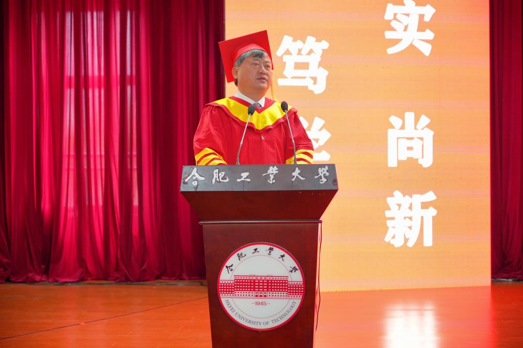 教师代表李沛军教授对全体毕业生表达了由衷的祝贺,希望各位毕业生永葆学习之心,保持奋进姿态;学会自我调节,永葆积极心态;培养良好习惯,拥有健康体魄。不惧风雨,勇于挑战,创造属于自己的精彩。