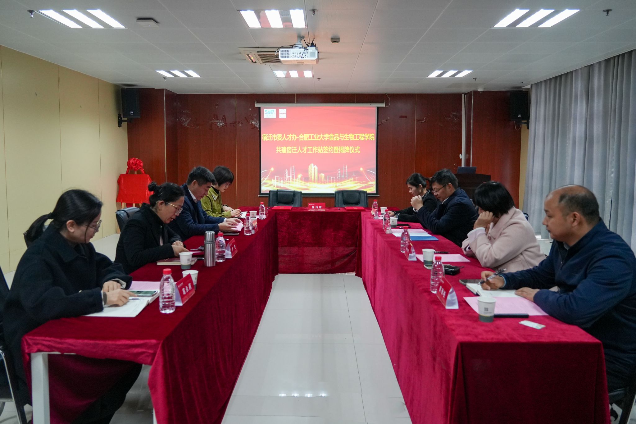 12月13日,太阳成集团tyc151cc与宿迁市委人才工作领导小组在食生楼206会议室举办人才工作站签约及揭牌仪式。宿迁市驻南京办事处主任、宿迁市驻南京招才引智工作局局长王万山,宿迁市人民政府驻南京办事处接待处处长仲春芹,宿迁市驻南京招才引智工作局副局长许娜娜等一行,太阳成集团tyc151cc相关领导和工作人员,以及尚未就业的部分毕业生参加仪式。