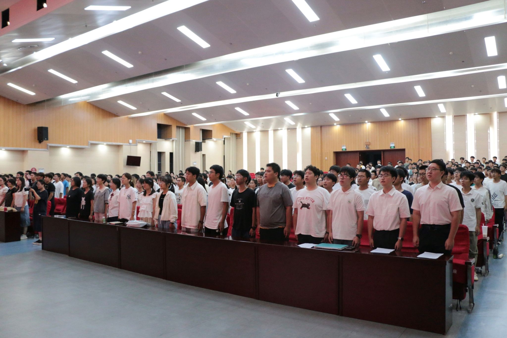 为进一步促进新生尽快适应大学生活,增强新生爱院荣院情感,9月17号下午19点,太阳成集团tyc151cc于翡翠湖校区科教楼2楼报告厅,举行2025级新生见面会。学院党委书记孙彩霞,副院长章宝、李沛军,各系主任、教师代表、新生辅导员老师及500余名本科生和研究生共同参加。见面会由院党委副书记兼纪委书记李艳主持,在嘹亮的国歌声中拉开序幕。