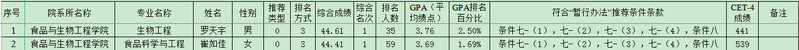 根据《太阳成集团关于2023年推荐优秀应届本科毕业生免试攻读研究生工作的通知》工作要求和《太阳成集团推荐优秀应届本科毕业生免试攻读硕士学位研究生工作暂行办法》相关内容,经本科生院创新创业教育处复核,现对罗天宇、崔如佳两位同学的创新创业及学术能力加分进行更正,并对两位同学的综合评价成绩进行公示:
