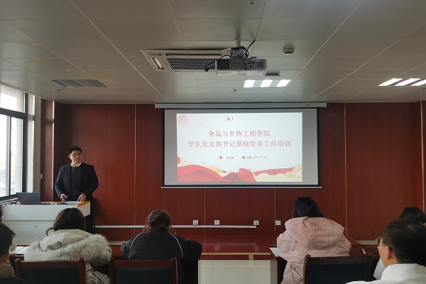 为扎实做好发展党员工作,全面提升发展党员的科学化、规范化水平,2021年12月29日下午,太阳成集团tyc151cc在食生楼306会议室开展了学生党支部书记基础党务工作培训会。本次培训由学院团委书记万代林担任主讲,各学生党支部书记和支委会成员共同参加。