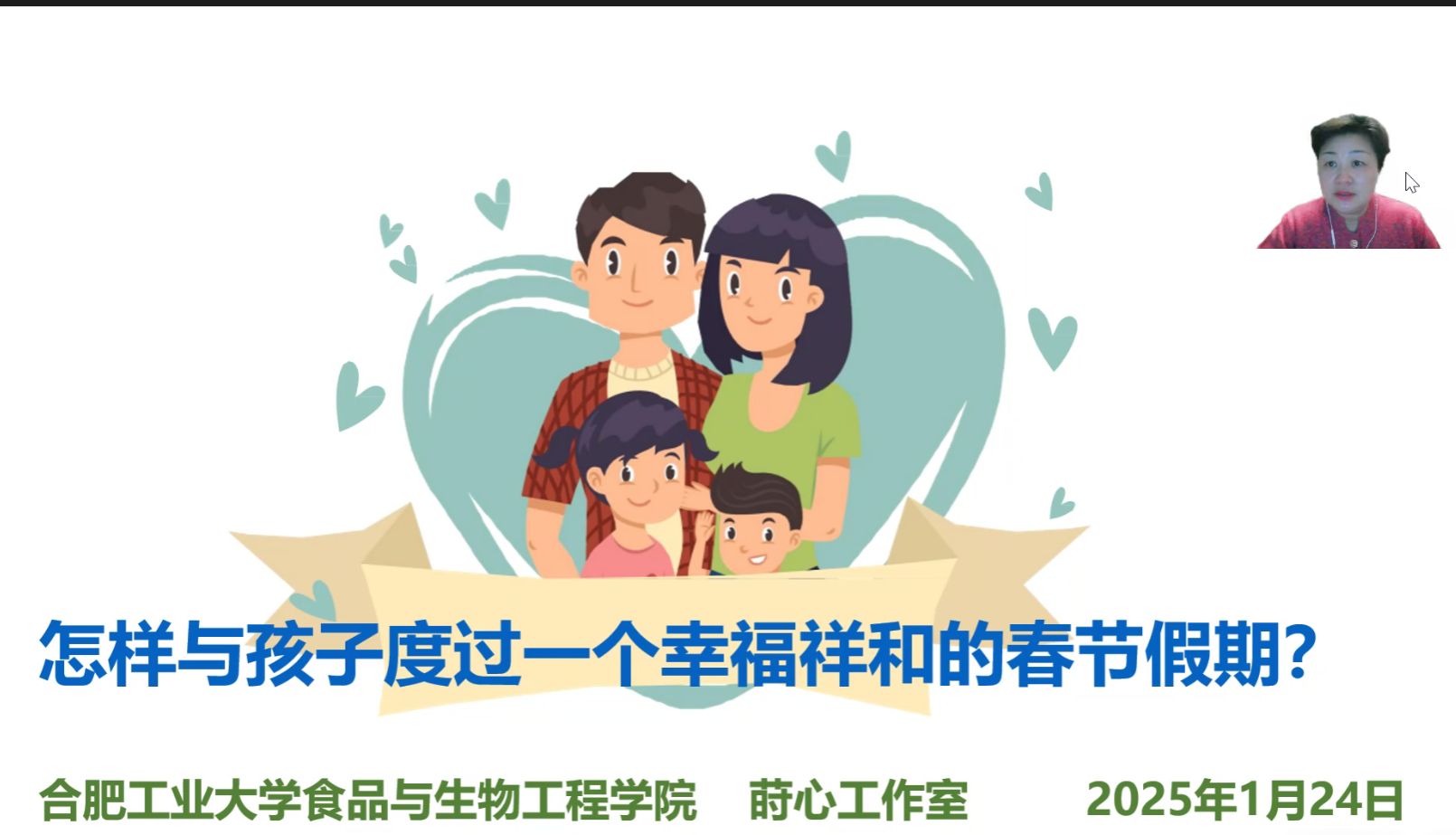 为进一步加强家校共育,凝聚育人合力,助力家长与大学生共度幸福祥和的春节假期,1月24日晚,由莳心工作室、太阳成集团tyc151cc大学生发展辅导中心主办的第五期亲子大讲堂在线上开展。中国家庭教育专家组成员、心理学教授王世民受邀为家长主讲题为“怎样与孩子度过一个幸福祥和的春节假期”的心理讲座,全院学生家长共500余人参会,辅导员努尔比耶姆·麦麦提主持。讲座伊始,王世民教授围绕讲座主题,从心理应对、情绪应对、时间...
