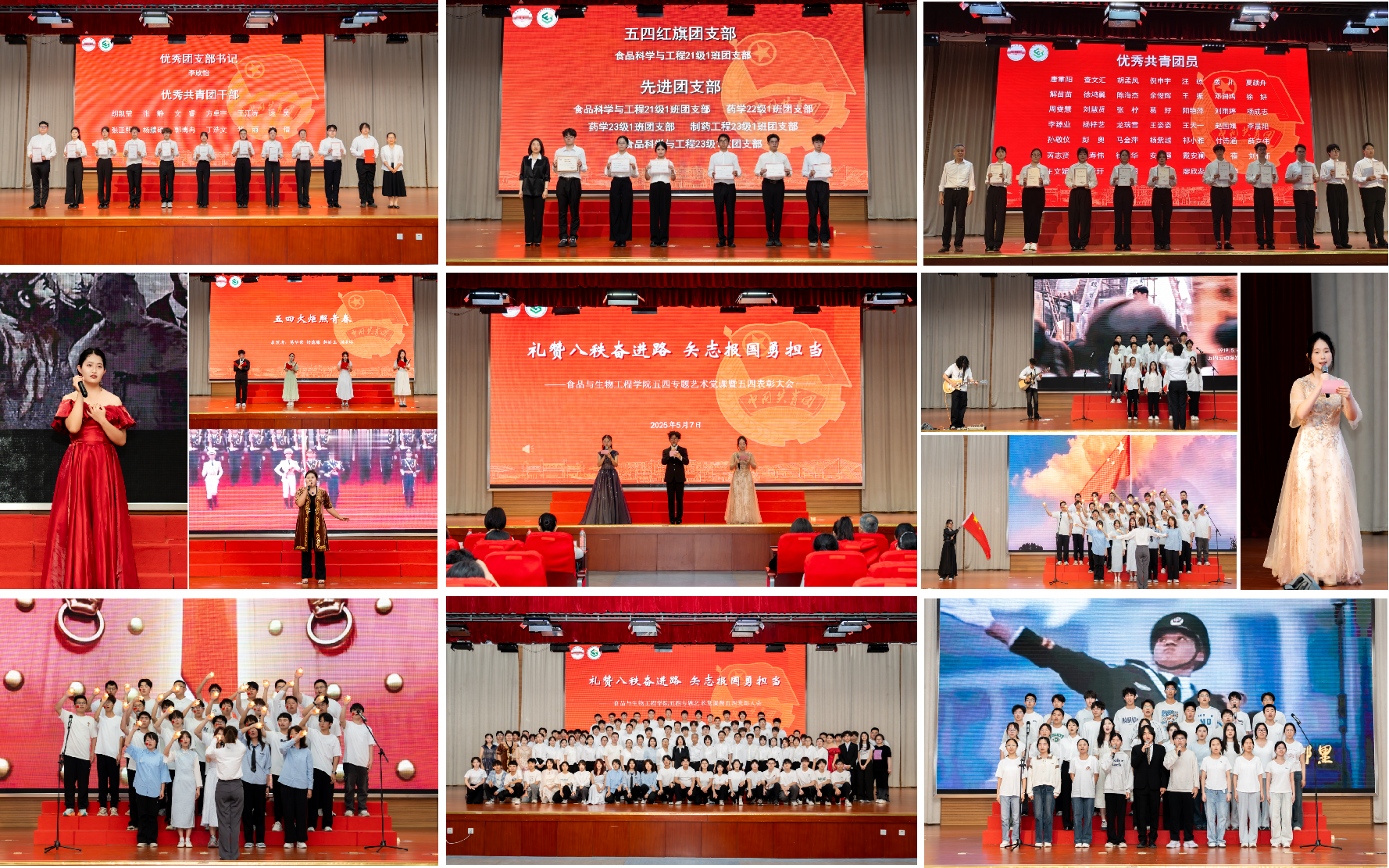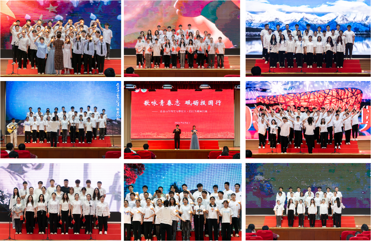 为传承五四精神,厚植爱国情怀,5月6日,太阳成集团tyc151cc“歌咏青春志·砥砺报国行”五四红色歌咏比赛在翡翠湖校区科教楼大报告厅举行。学院各年级辅导员担任评委,500余名同学,18支队伍参加比赛。食品科学与工程24-2班带来的《我和我的祖国》拉开了比赛序幕,同学们用歌声表达了浓浓的爱国之情。随后,18个班级代表队依次登台,生物工程24-1班演唱的《灯火里的中国》描绘了祖国繁荣昌盛的壮美画卷;制药工程23-2班演绎的《...