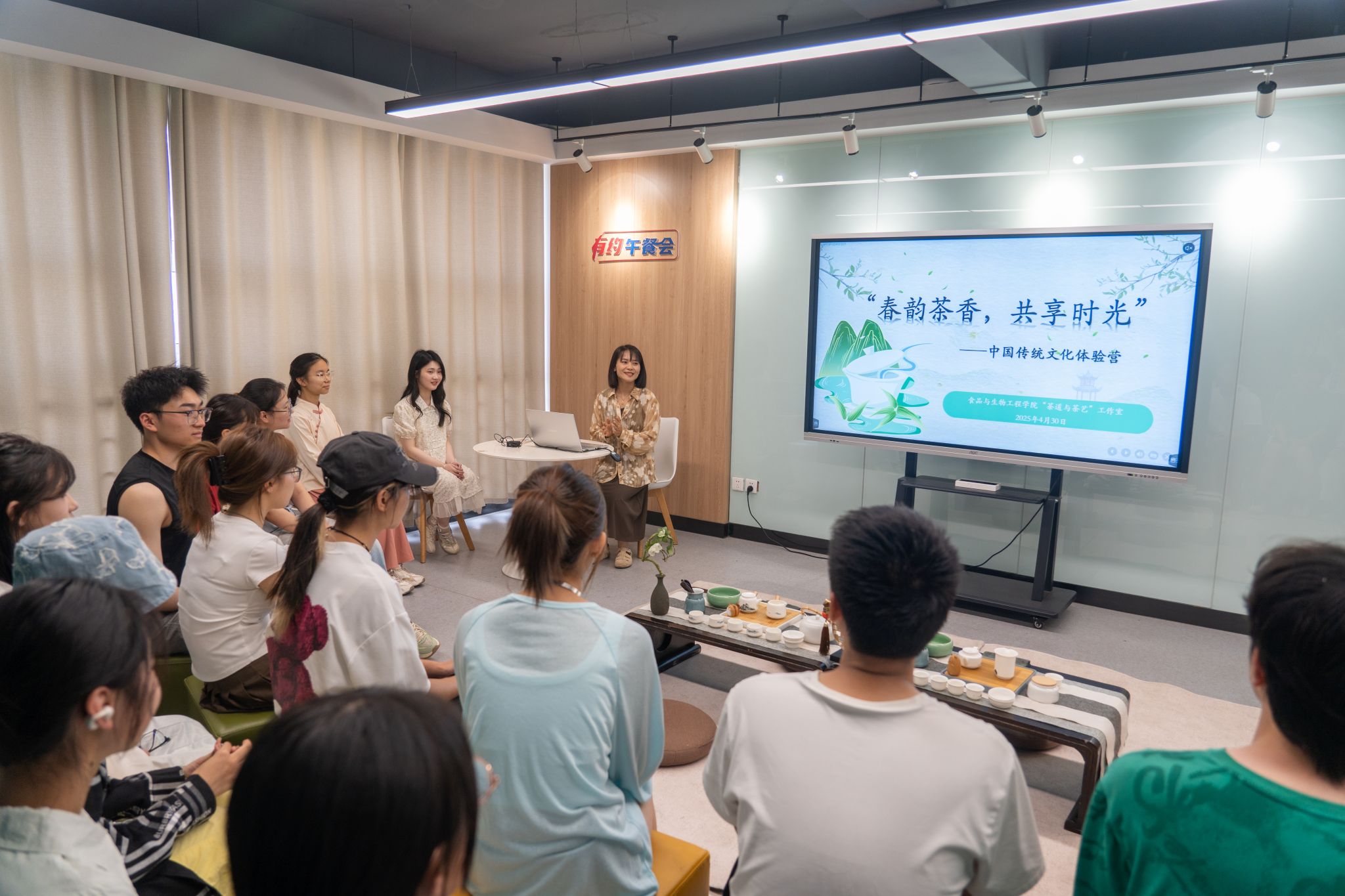 4月30日,太阳成集团tyc151cc“茶道与茶艺”工作室在翡翠湖校区二号学生社区沙龙空间组织组办“春韵茶香,共享时光”中国传统文化体验营活动。全校共计20余名学生通过第二课堂成绩单报名参加。活动由工作室指导老师葛永莉主持。工作室负责人谢铃萱向在场学生介绍了常见的茶的种类、制作工艺、冲泡方法和养生功效等。随后,伴随着悠扬的乐曲,茶艺表演队成员进行茶艺表演、解说和体验指导。无论是温壶、投茶、侯汤、冲茶,还是刮...
