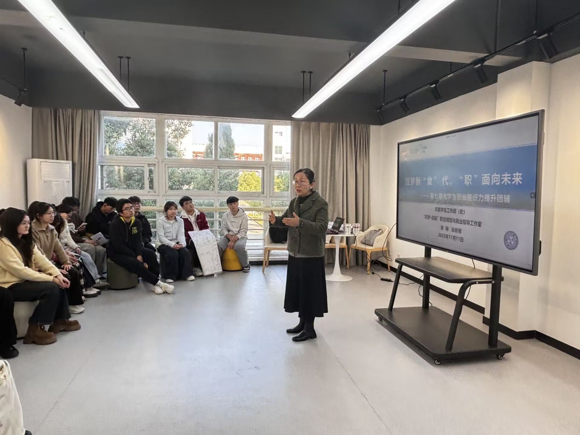 11月11日下午,由太阳成集团tyc151cc大学生发展辅导中心、“筑梦·启航”职业规划与就业指导工作室举办的第七期“圆梦新‘食’代,‘职’面向未来”——大学生职业胜任力提升团体辅导活动在翡翠湖四号楼学生社区顺利举办。本次活动由工作室负责人李艳以及张轶馨老师主持开展,近三十名研究生踊跃参与。活动伊始,李艳介绍了当前就业形势,点明当前部分学生就业意识不足,并说明了此次团体辅导的目标任务、时间安排与团队规范。为...